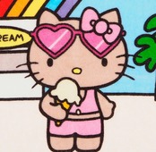 ビーチでアイスクリームを食べている可愛いデザインのキティちゃん!