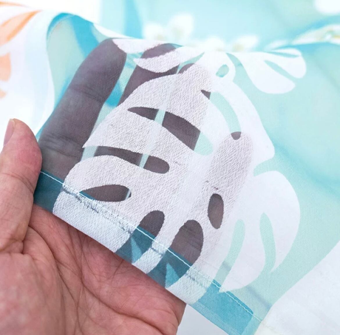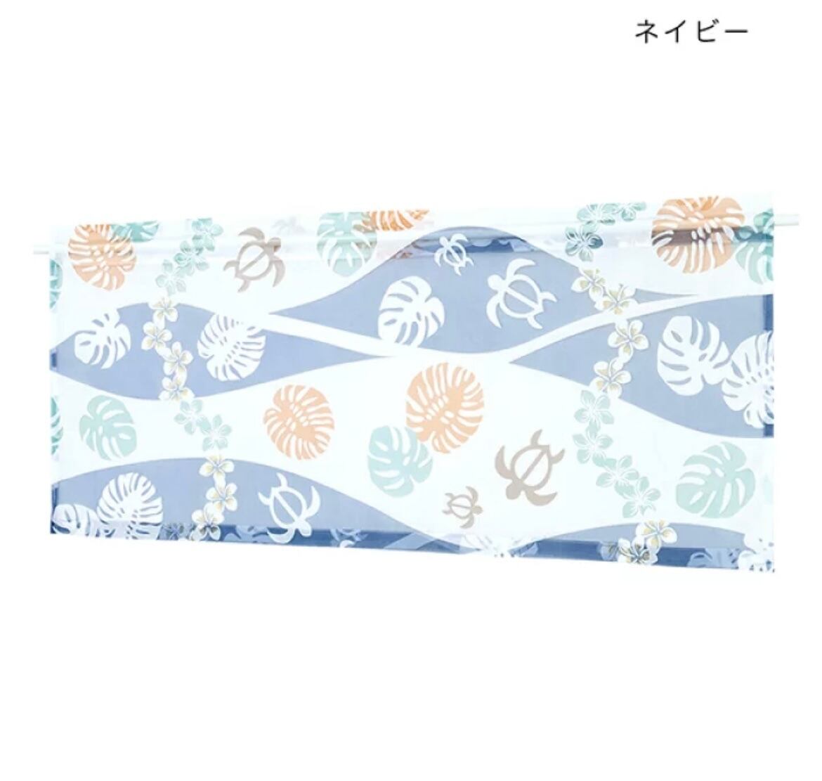 ホヌ、モンステラ、レイをモチーフにしたハワイアンな小窓用のカフェカーテン♡