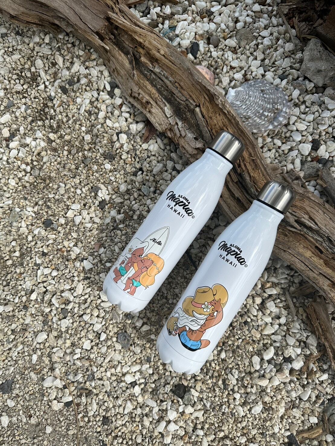 サーフィンとファッションを愛する、365日HAWAIIを感じられるキャラクター、ALOHA MAPUA(アロハマプア)のステンレス ボトル。可愛らしさがギュッと詰まったデザインです。