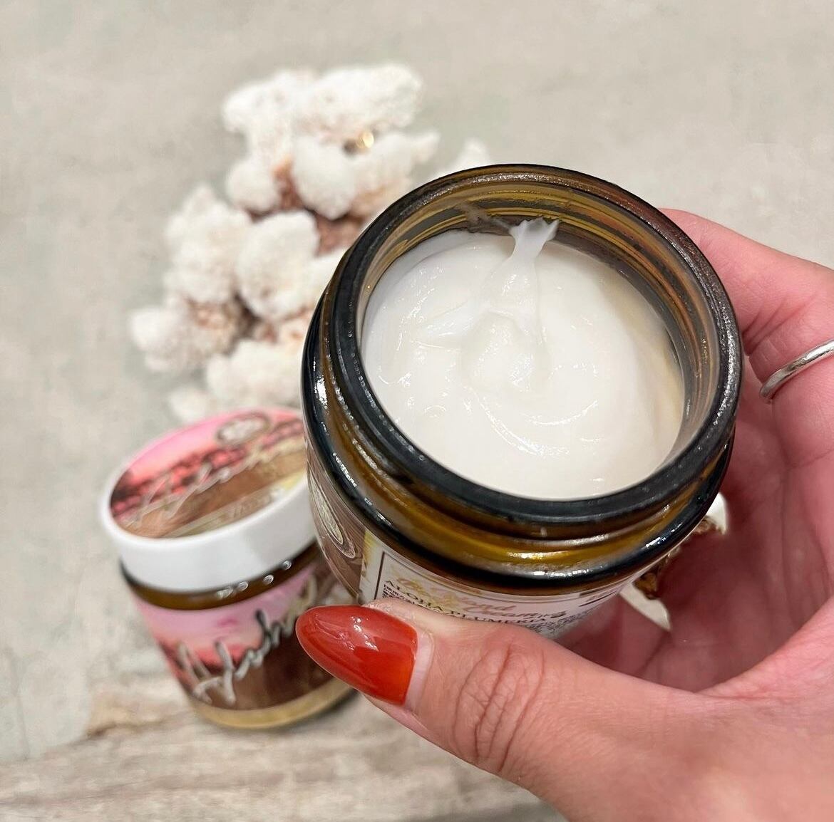 保湿成分:プルメリアエキス、ココナッツオイル(ヤシ油)、ハチミツ成分配合。