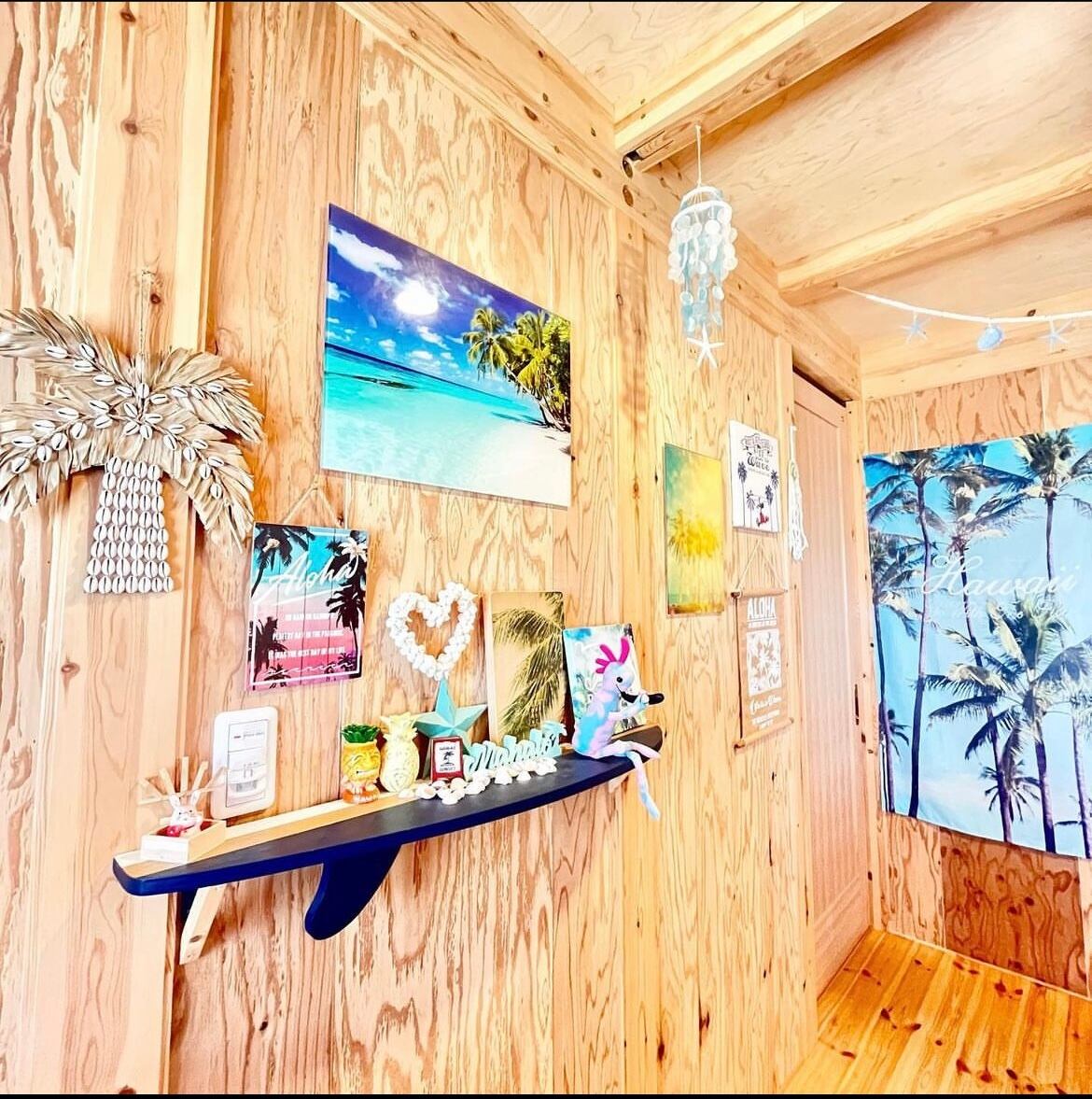 ただのウォールシェルフに見えて実はサーフボードモチーフというのが