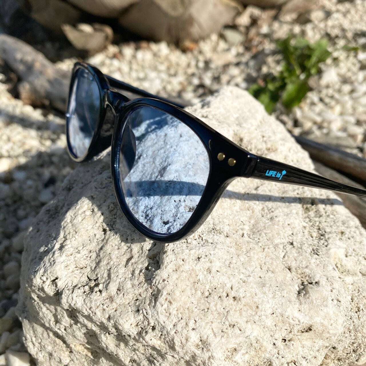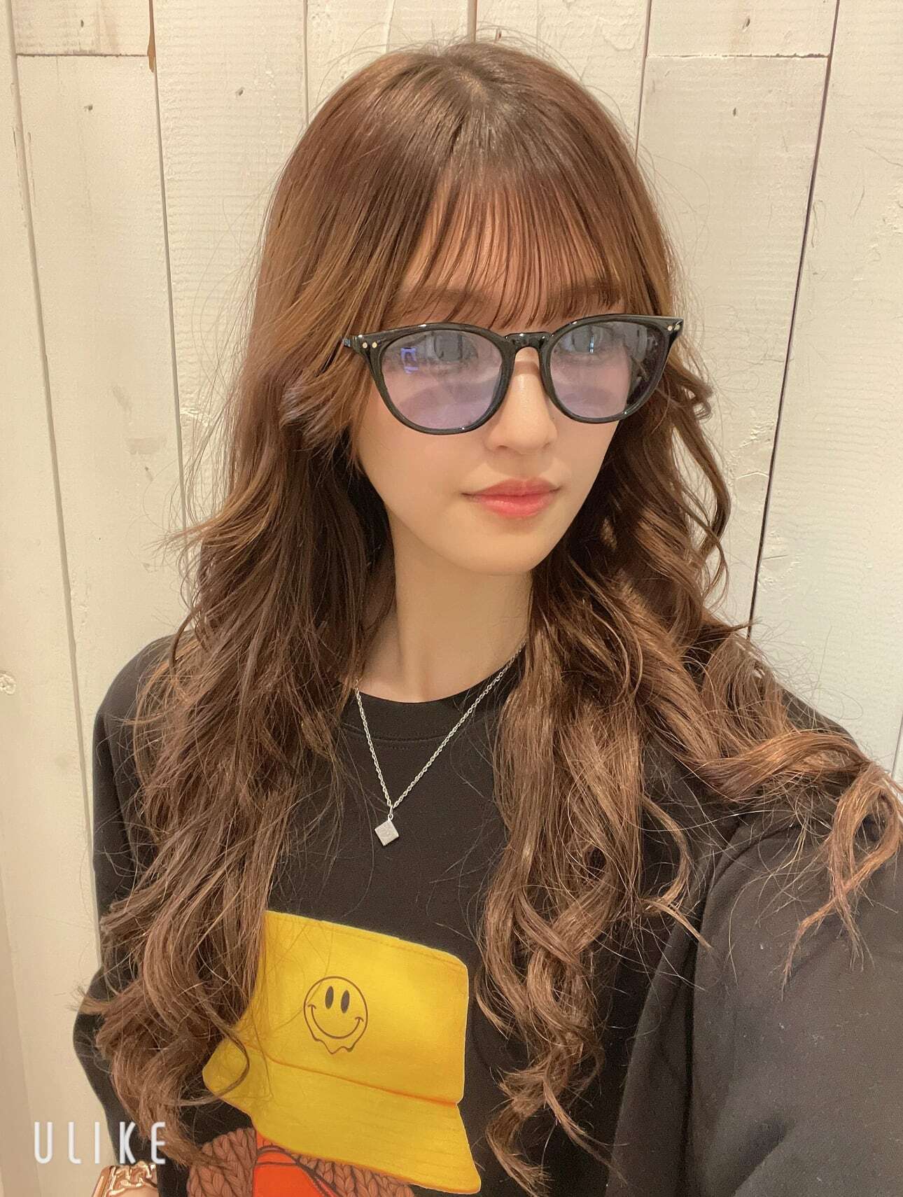 目が透けて見える薄い色のレンズなので室内でも掛けやすくUVカット効果もあるので外出でも活躍する便利なカラーレンズ設定です。