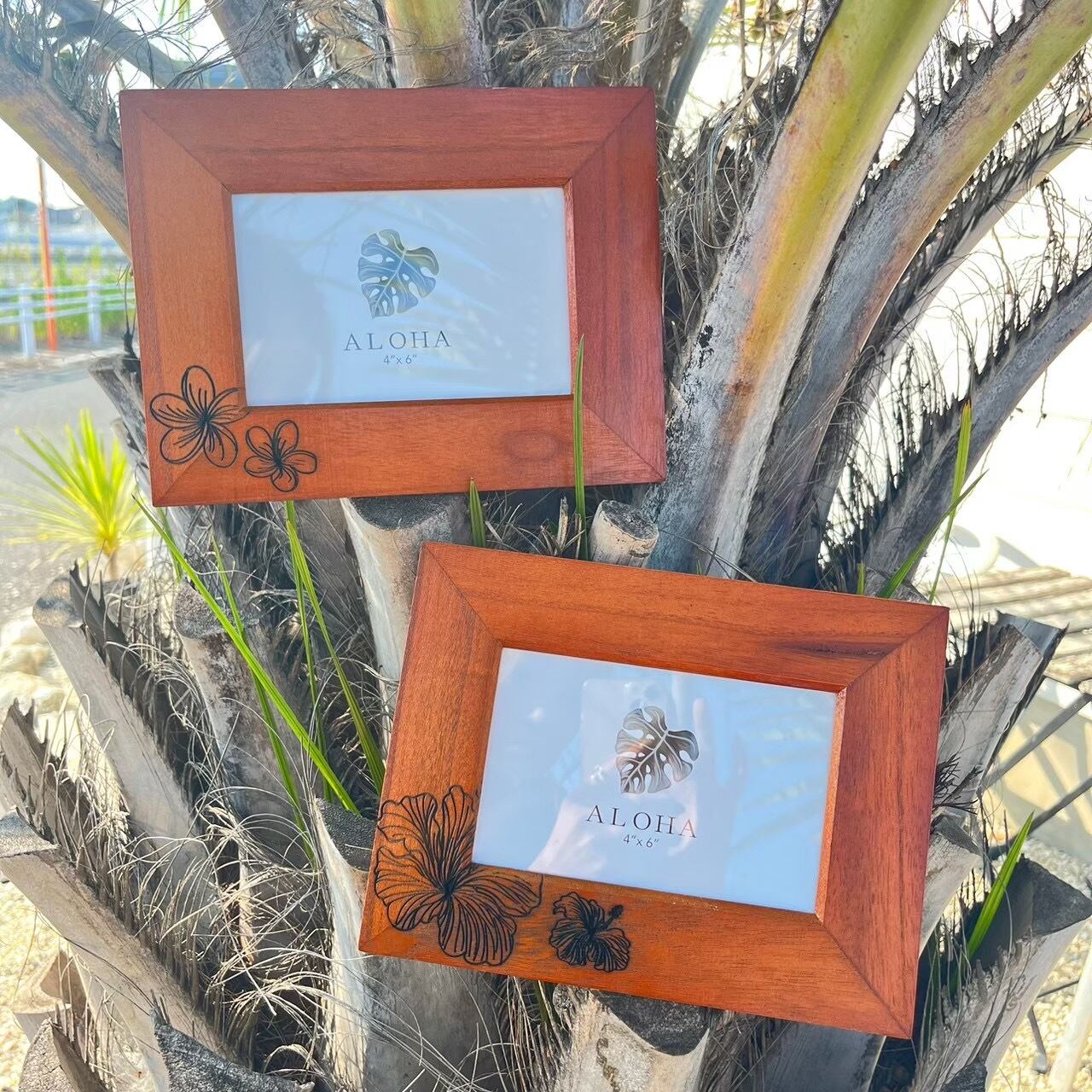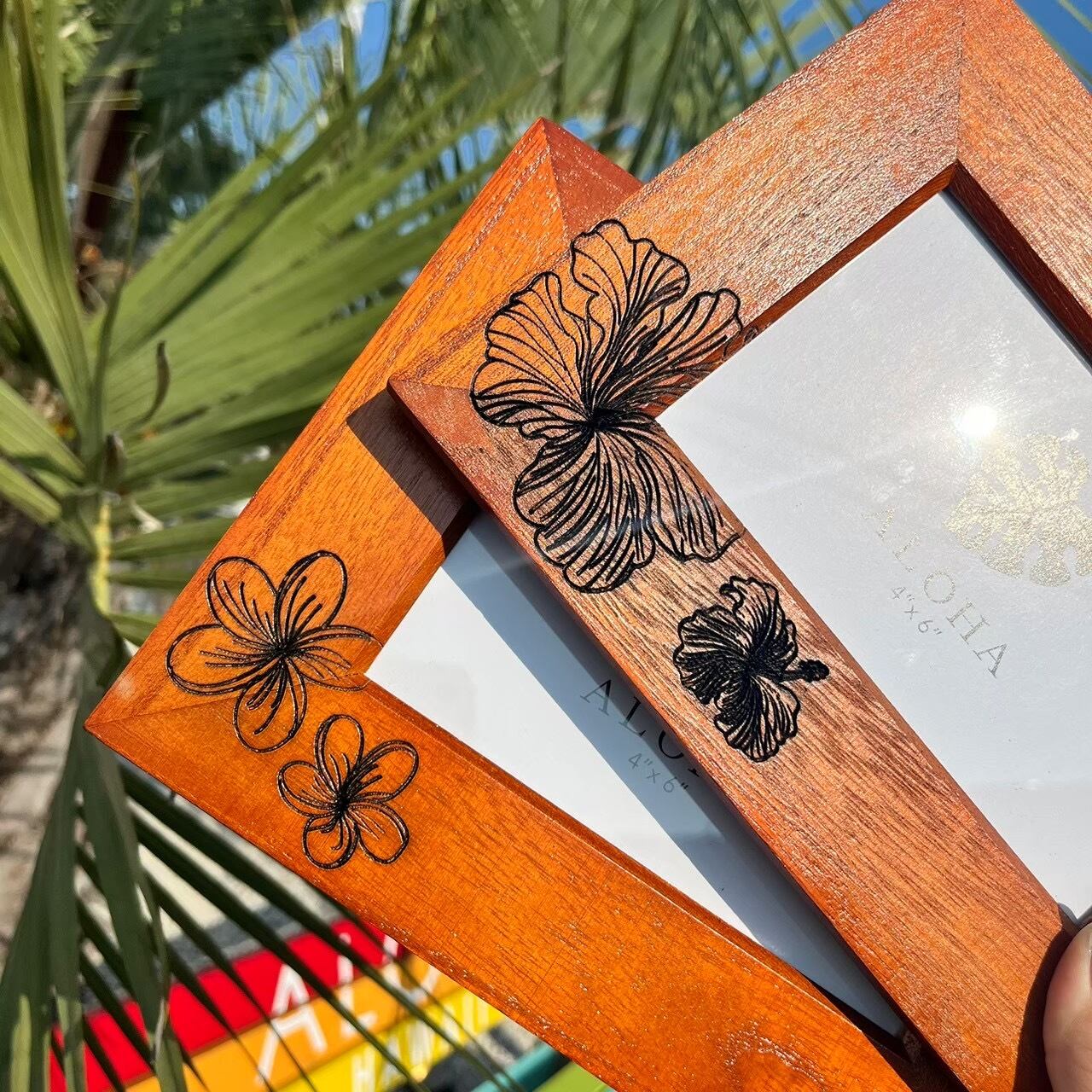 HAWAIIを代表する植物がデザインされたシンプルなフォトフレーム。