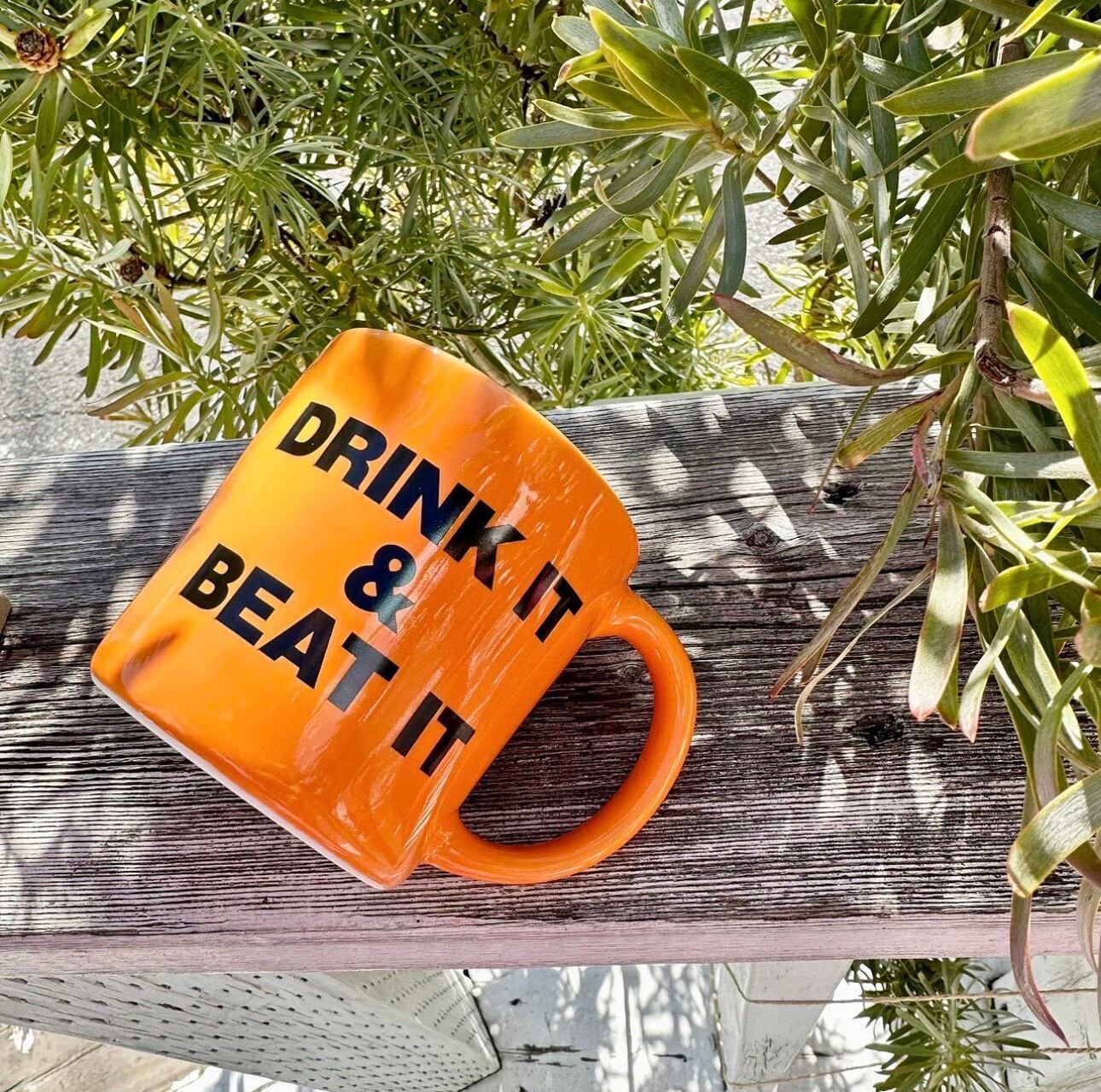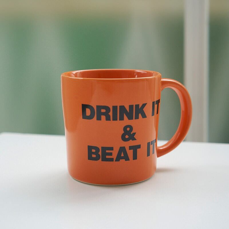 DRINK IT&BEAT IT MUGは、スタイリッシュでユニークなデザインのマグカップです。