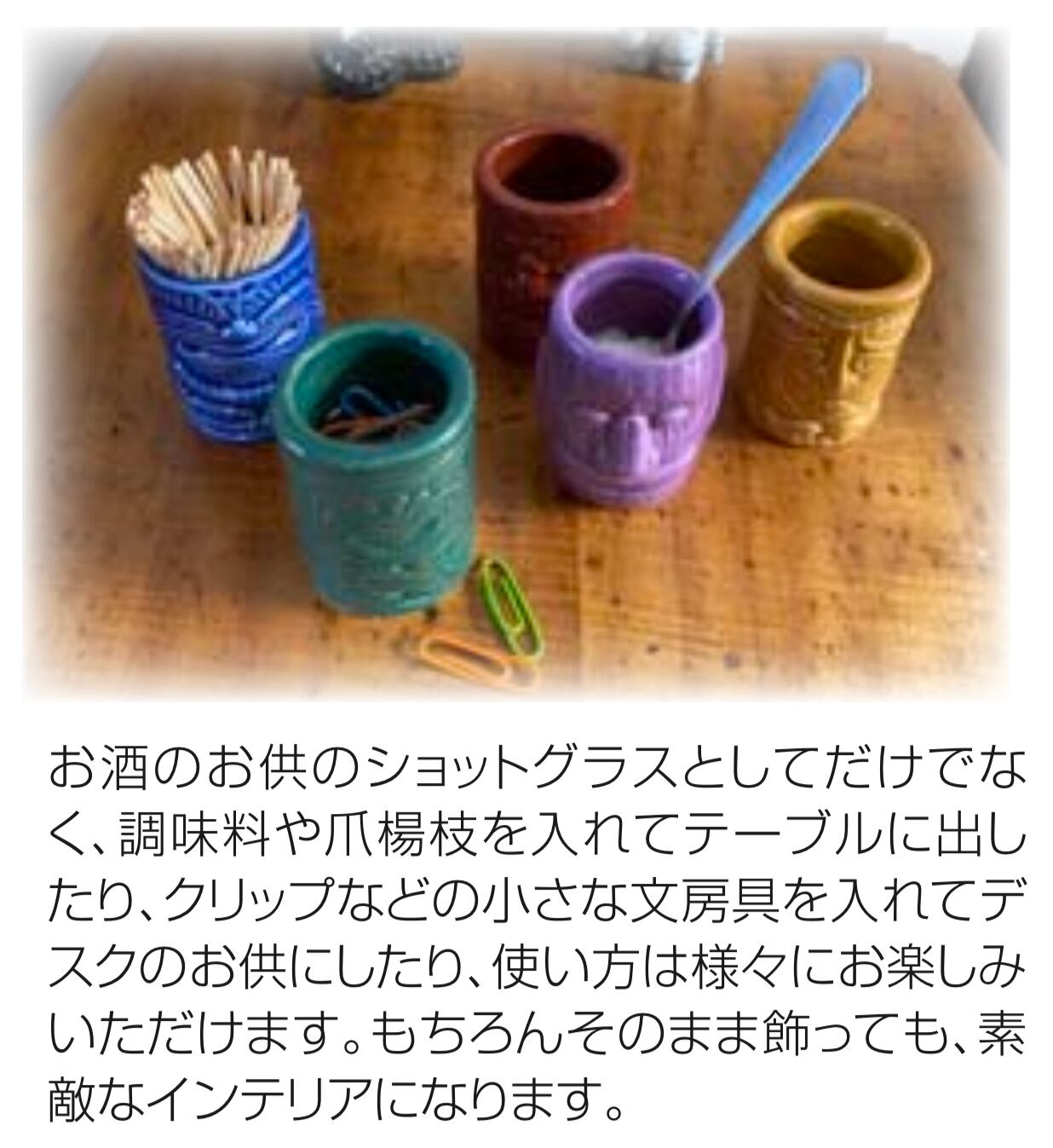 ショットグラスとしての使用はもちろん、調味料や爪楊枝、小物入れなどとして使うのもおすすめ♡