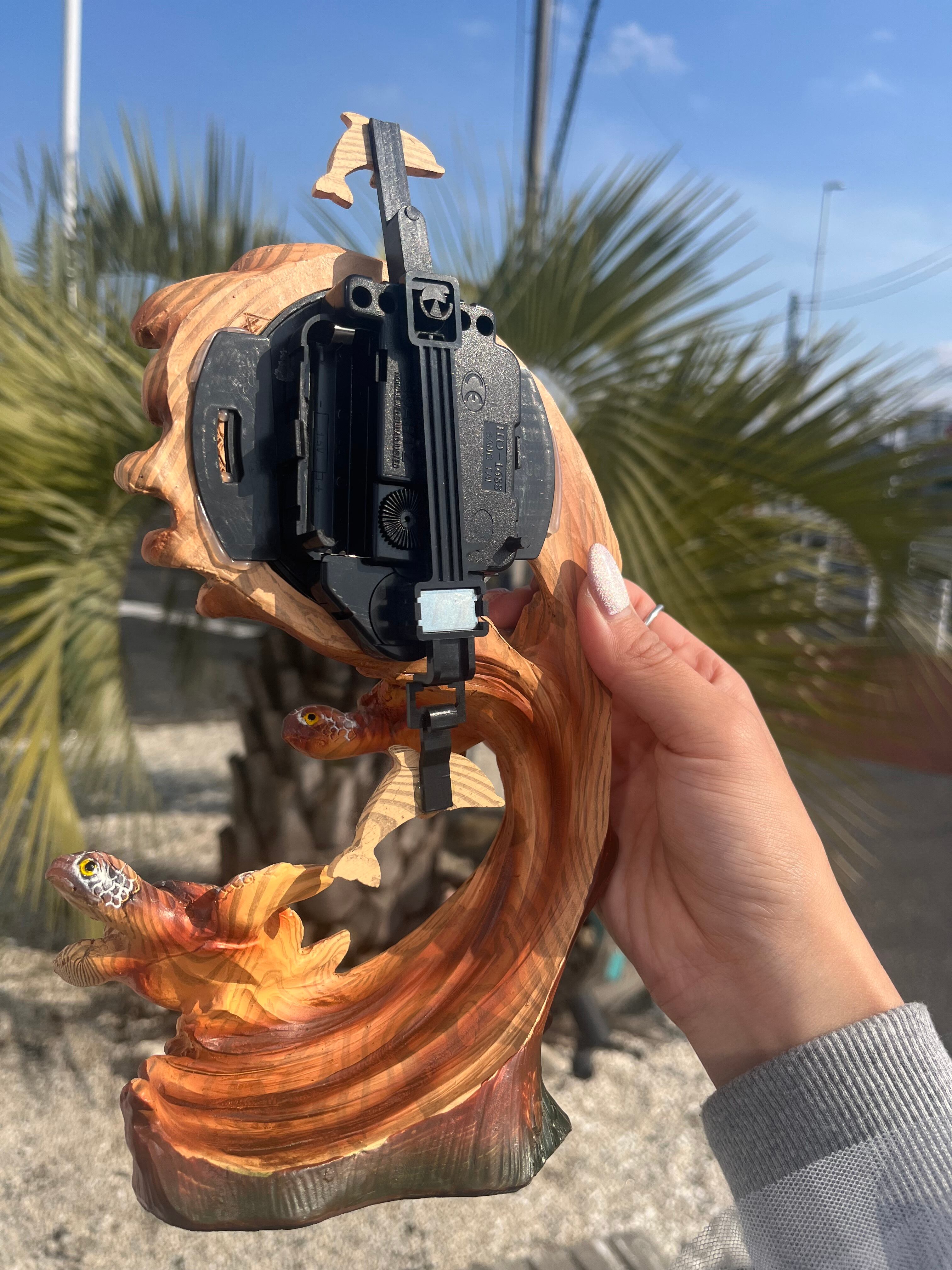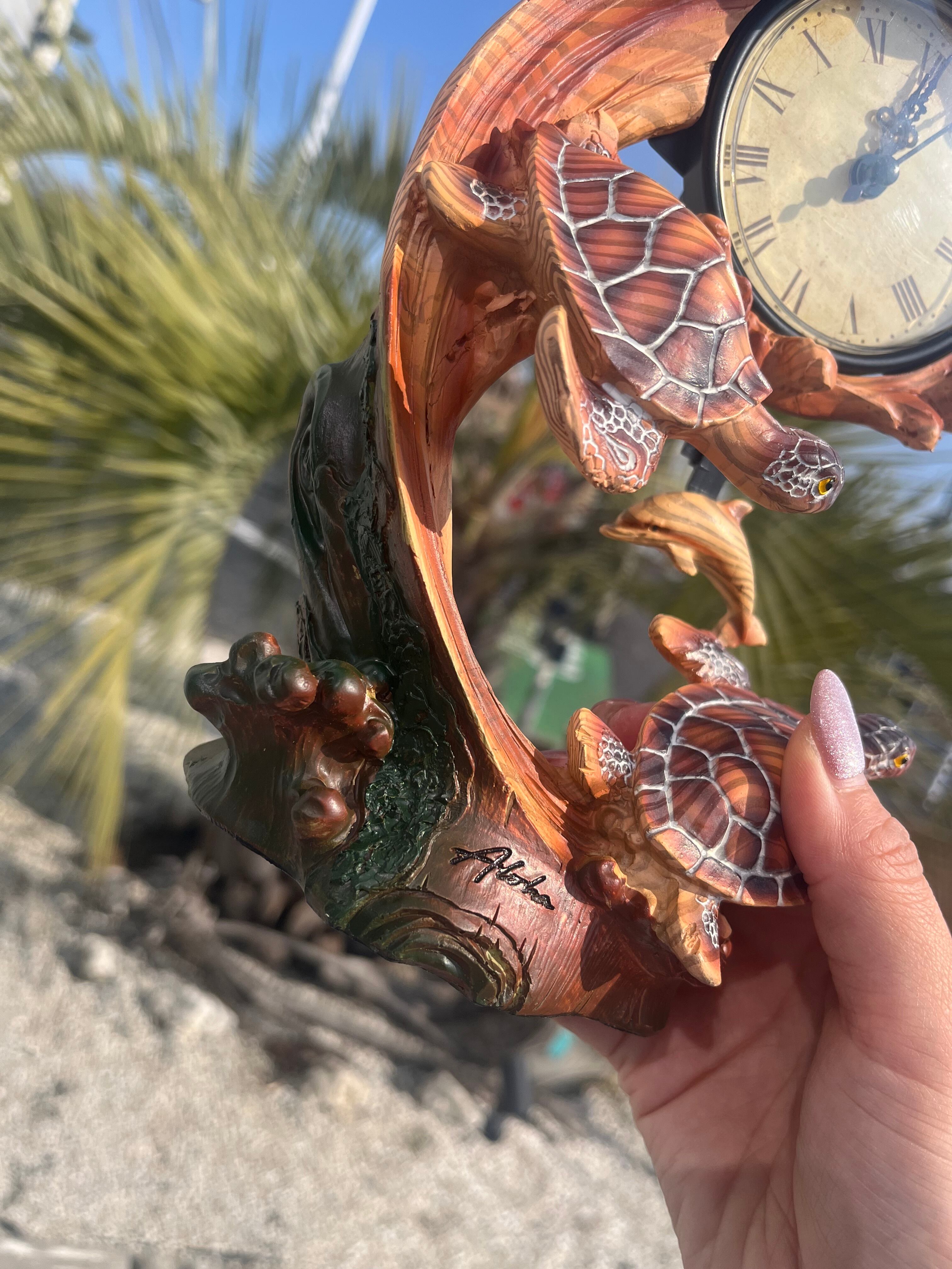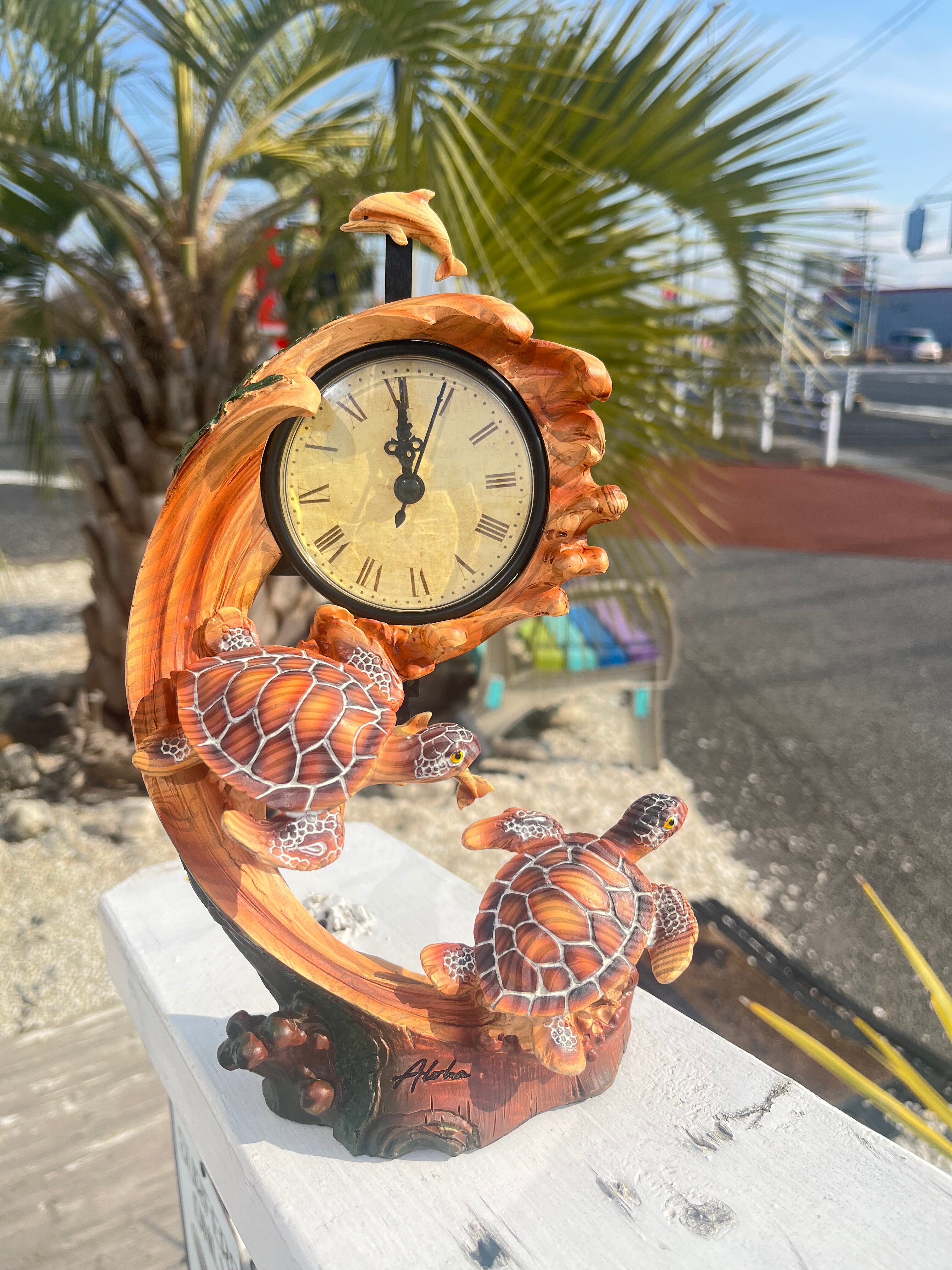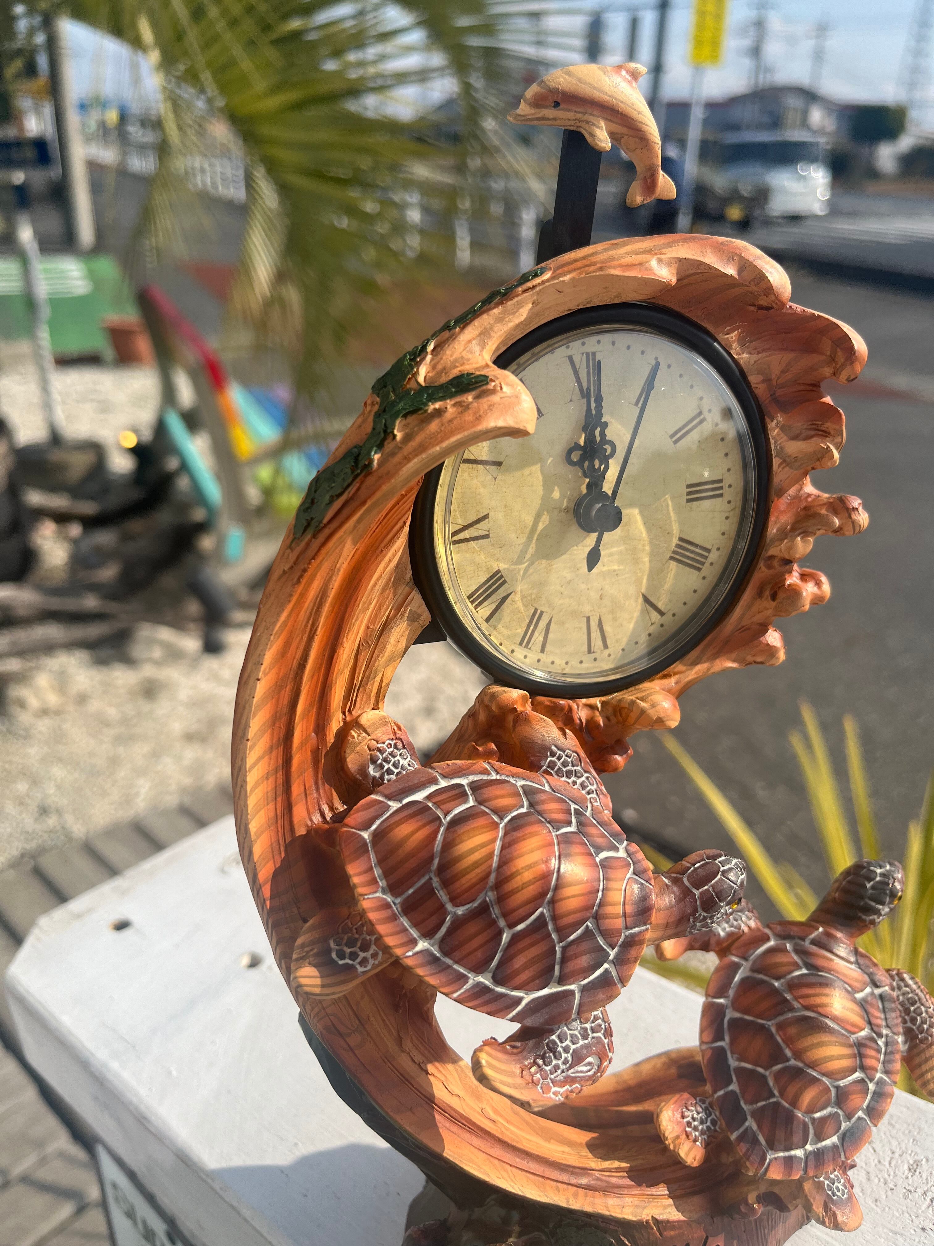 Hawaiiの海を気持ちよさそうに泳ぐホヌとイルカの置き時計が入荷しております♪