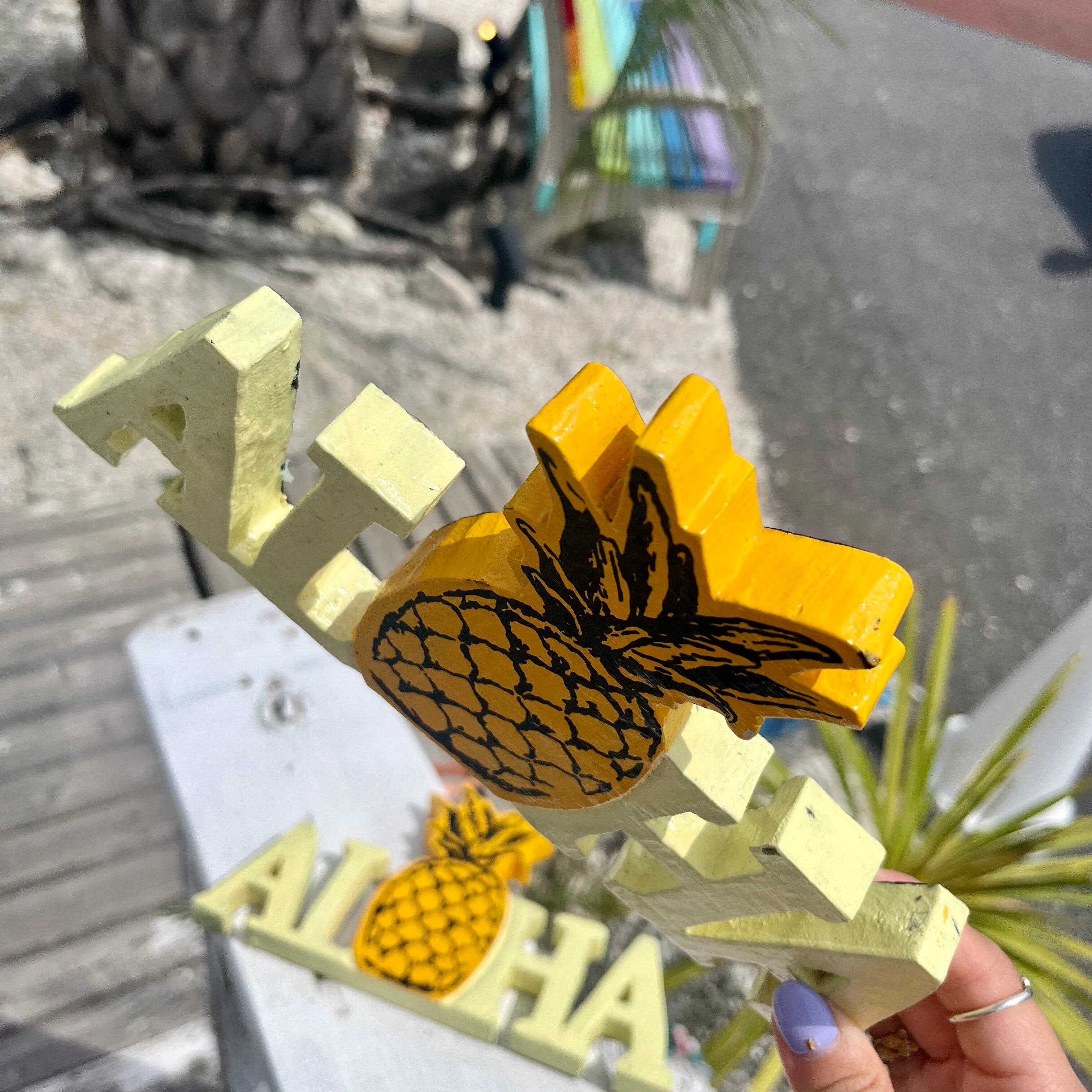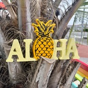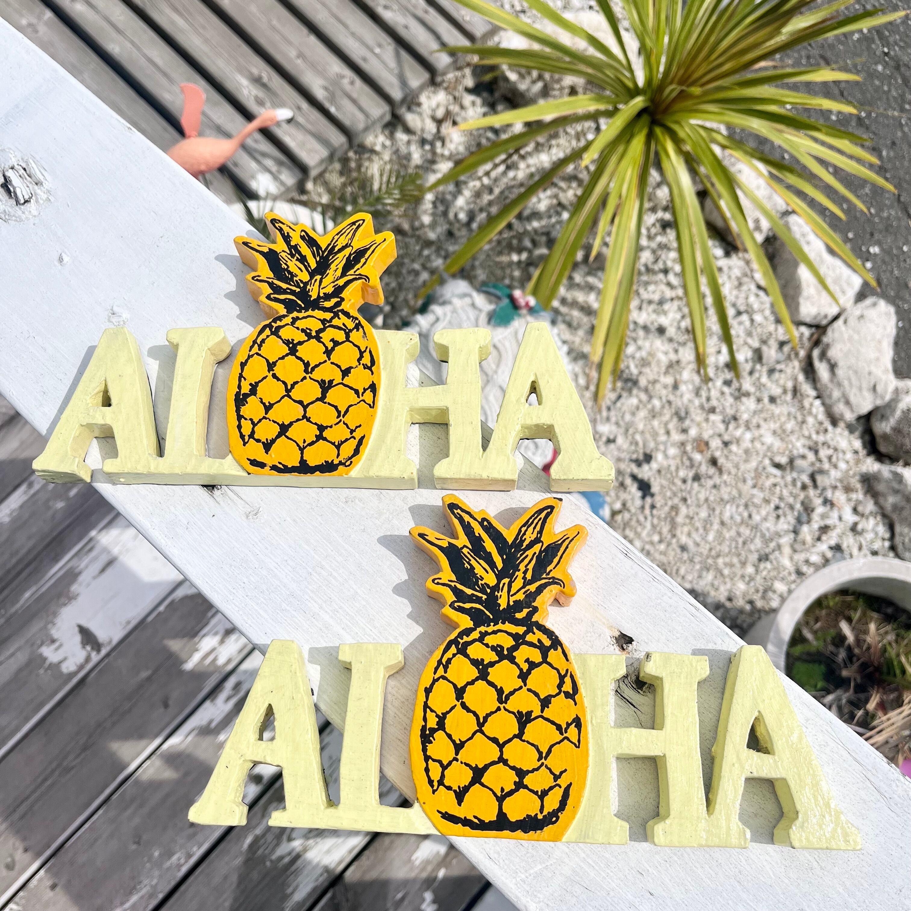 ALOHAの文字とパイナップルがポイントのスタンドインテリア。